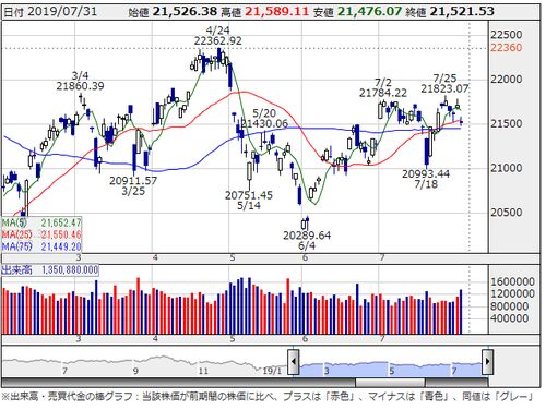 おはようございます NY株式市場は反落しました。 6月の米耐久財受注額が良好だった事で金融緩和期待が後退したと言うのが下落の理由のようだ。 NYダウ -128.99 27140.98 NASDAQ -82.96 8238.54 S&P500 -15.89 3003.67 VIX指数 +0.67 12.74 原油 -0.04 55.98 …